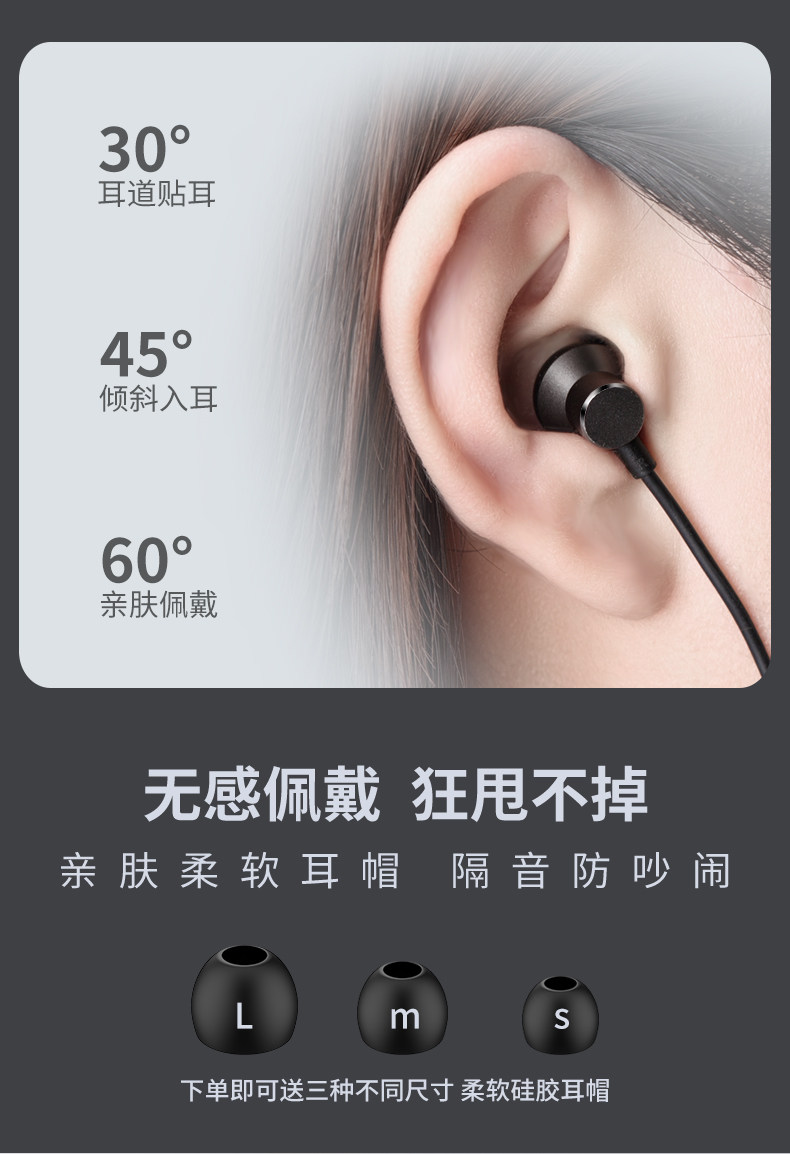 支持蓝牙5.0连接,功耗更低更稳定。轻量化亲肤材质,双单元声学架构,IPX5级防水防汗,柔韧轻巧,佩戴舒适,内附三种不同尺寸的耳塞胶套,不用时支持磁吸收纳。整体续航8小时,入门级蓝牙耳机的好选择。(路飞)