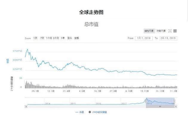 2018年,加密货币市场全面溃败,全年数字货币市值蒸发7276亿美元,同比下跌87.76%。2019年以来,比特币价格始终低于4000美元,正式进入“史上最长熊市”,距离2018年1月的最高峰已跌去超80%。