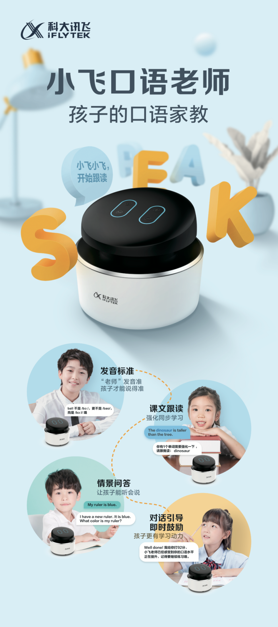 曾经有一个调查显示:90%的中国学生,都认为自己的英语口语不好。即便是英语成绩高的学生也是如此。口语好的人都是相似的,但差则各有各的差:有的人认为口语不好是因为词汇量不够,有的人认为是自己的表达能力不强,有的人认为是因为听的少、没语感……归根到底,是因为在低效的学习方法上原地踏步。为了解决口语难题,科大讯飞推出小飞口语老师,多种口语问题,一个对策解决,帮孩子们找到更科学的英语学习途径。