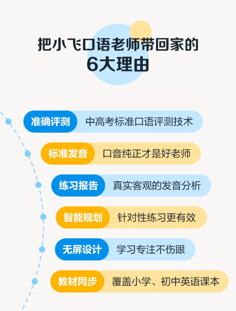 相对于传统的学习机,小飞口语老师有科大讯飞A.I.技术的加持更懂因材施教,可以高效地辅导孩子针对孩子的口语弱点进行突破,避免重复的无用功。