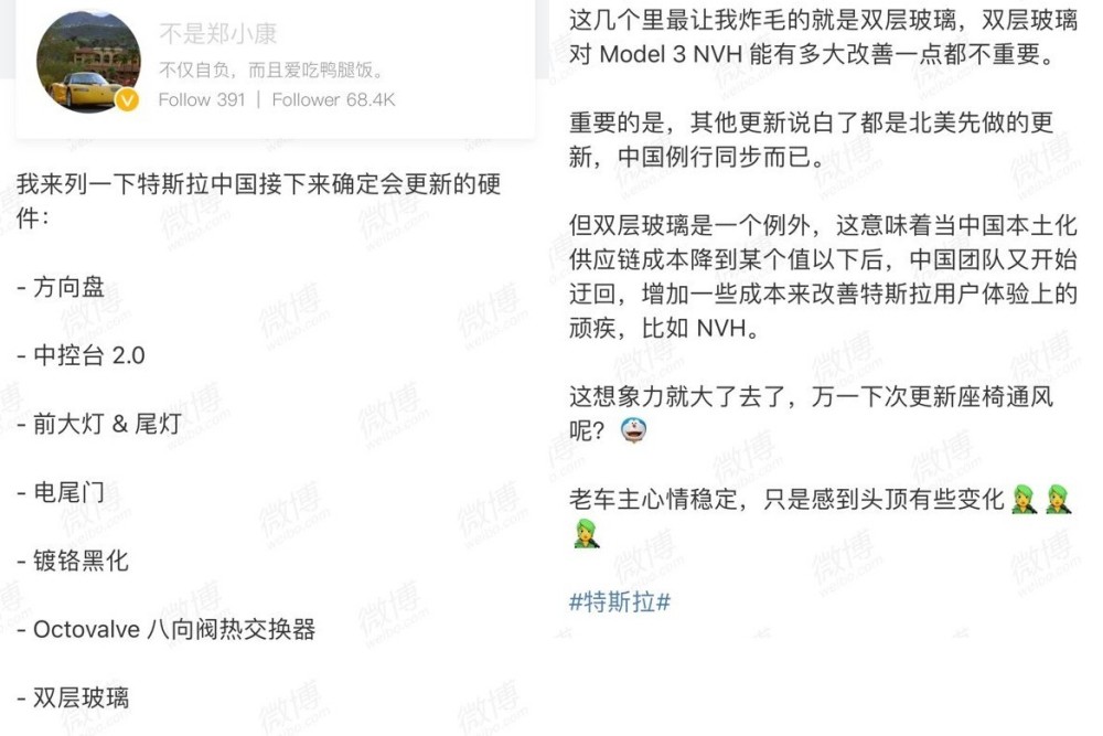 微博用户所曝光的中国产Model 3改款详情