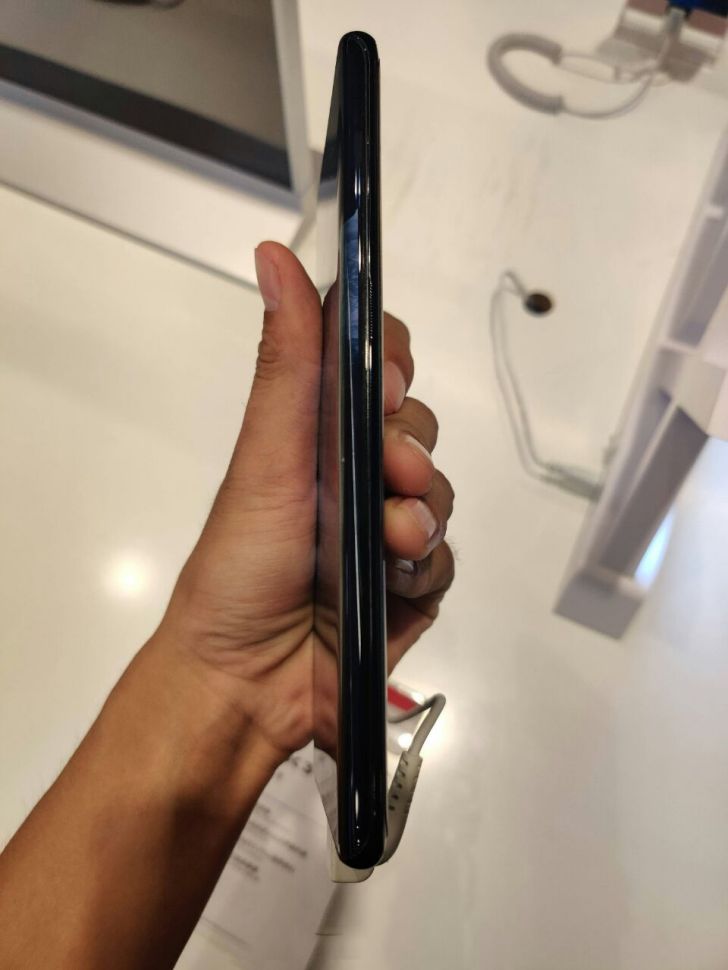 相较于先前曝光的vivo NEX 3 5G白色款而言,此次曝光的vivo NEX 3 5G采用的是黑色渐变色后盖。从上图可以发现,NEX 3所采用的后盖设计在灯光照射下可以呈现出不同的颜色与纹理,十分深邃且绚丽。除此之外还可以看到vivo NEX 3 5G正面所采用的大曲率瀑布屏十分震撼的显示效果。